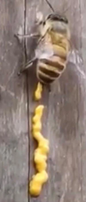 本物のミツバチの糞は長い黄色の帯です。 塩辛い匂いがすると言われています。 一般的に、ミツバチは巣箱の中で大きくはありませんが、近くで排泄されます。 写真では、ミツバチが歩いて物を引っ張っているときに引っ張っていることがわかります。 「ハニーマスタード」のように、人々はこのミツバチが「胃腸炎」を持っているかどうかのため息をつく必要があります。